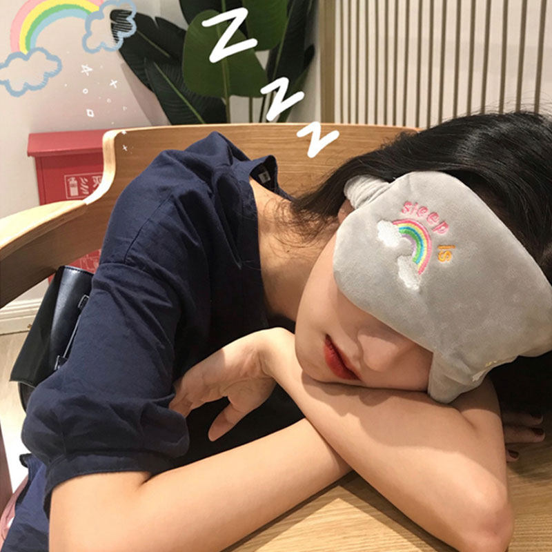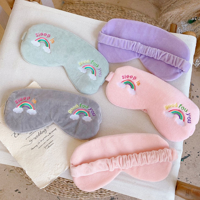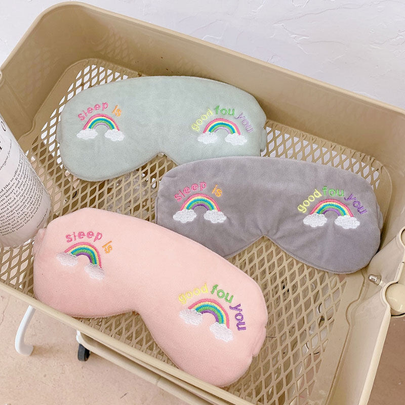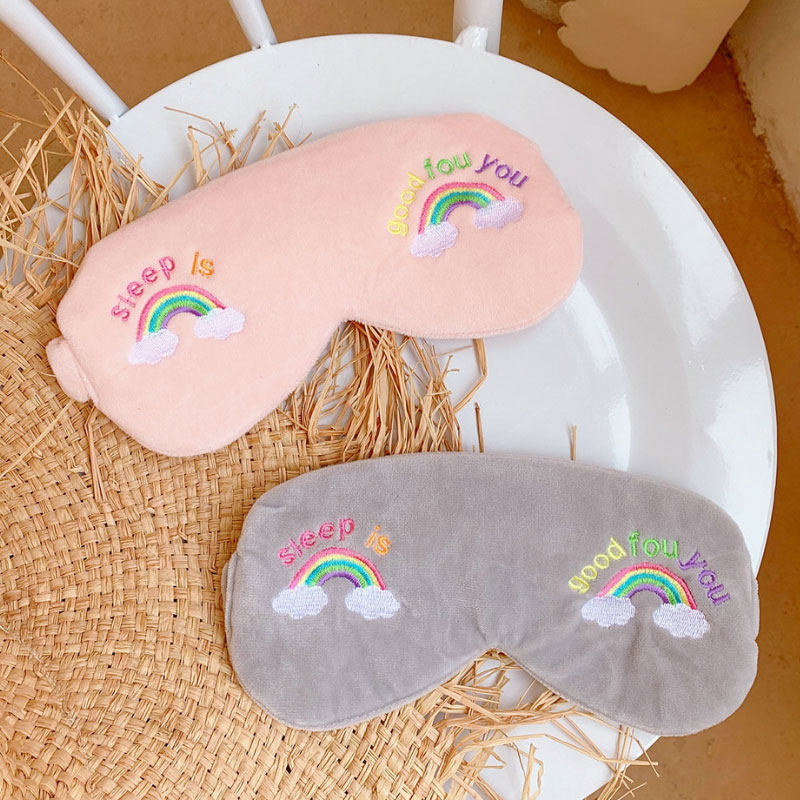 ふわふわの柔らか素材に虹の刺繍が施された面白いアイマスクです。