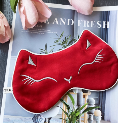 可愛らしい猫の表情が刺繍された絹製のアイマスクで、まるで猫ちゃんと一緒にお昼寝している気分を味わえます。